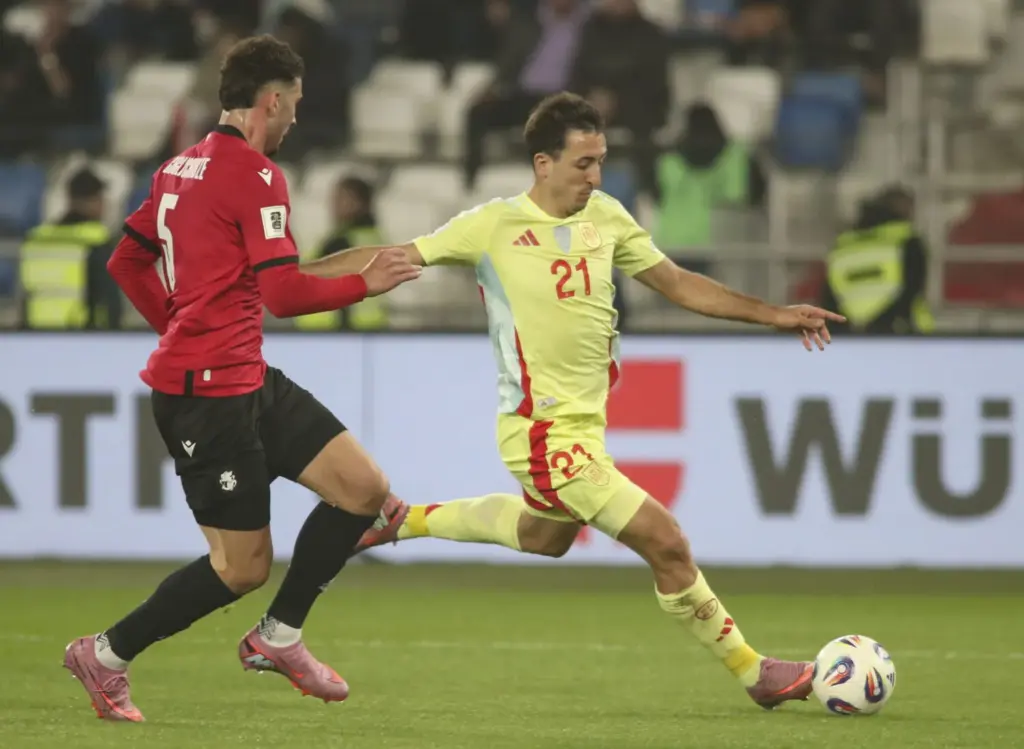 España logró golear en Georgia, Pedri no estaba, en la penúltima escala de la fase de clasificación mundialista. Fabián ocupó su puesto en el once titular, iluminado por la presencia de Baena. Se movió por el flanco izquierdo, con Zubimendi, Fabián y Merino como sus socios predilectos. Y no tardó en demostrar el veneno que lleva dentro, tan solo diez minutos, para leer entre líneas y colarse entre el lateral (Mamuchashvili) y el central (Goglichidze). Su pase de la muerte a Ferran sirvió para el remate del azulgrana y el despeje con la mano de Gocholeishvili. El VAR entró en escena y Benoît Bastien señaló penal. Oyarzabal demostró su sangre fría desde los once metros, a los 11 minutos y el 0-1 subió al marcador cuando los aficionados georgianos apenas habían empezado a calentar sus gargantas con Kvaratskhelia.