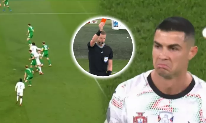 Papelón de Cristiano Ronaldo con Portugal que no pudo clasificar en esta fecha de Eliminatorias. Irlanda con sus guerreros derrotó 2-0 a la Selección de CR7 y le provocó la primera expulsión de su historia con la camiseta portuguesa. Doce expulsiones a nivel de clubes tiene Cristiano y una con su Selección, algo histórico para la trayectoria del jugador más elogiado de Portugal.